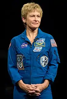Peggy Annette Whitson (born February 9, 1960) is an American biochemistry researcher, retired NASA astronaut,[3] former NASA Chief Astronaut, and an active Axiom Space astronaut. Whitson has a total of 675 days in space, more than any other American or woman.[4][5]