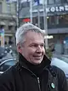 In 2011, Haavisto was nominated as the Green League candidate for the Finnish presidential election of 2012.[9] In the first round of the election on 22 January 2012, he finished second with 18.8 percent of the votes. In the run-off on 5 February, he garnered more than one million votes (37.4 percent), yet still losing to the National Coalition Party candidate, former Finance Minister Sauli Niinistö.[10] Haavisto was the first openly gay candidate and the first male candidate to have served in non-military service instead of the regular military service to make it to the second round of presidential elections in Finland.