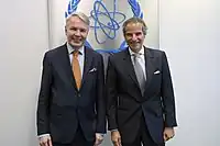 Haavisto meets with IAEA Director General, Rafael Mariano Grossi during his official visit at the Agency headquarters in Vienna, Austria. 1 November 2022.