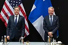 Haavisto meets with U.S. Secretary of State Antony J. Blinken in Reykjavik in May 2021.