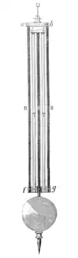 The first pendulum to correct for this error was the mercury pendulum invented by Graham in 1721, which was used in precision regulator clocks into the 20th century. These had a bob consisting of a container of the liquid metal mercury. An increase in temperature would cause the pendulum rod to expand, but the mercury in the container would also expand and its level would rise slightly in the container, moving the center of gravity of the pendulum up toward the pivot. By using the correct amount of mercury, the centre of gravity of the pendulum remained at a constant height, and thus its period remained constant, despite changes in temperature.
