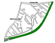 Penn (population 12,392[6]) is a formal ward of Wolverhampton, West Midlands. Penn ward borders the wards of Merry Hill, Graiseley and Blakenhall as well as South Staffordshire. It forms part of the Wolverhampton South West constituency.