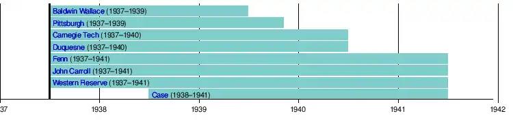 The original members were Baldwin Wallace College, Carnegie Institute of Technology, Duquesne University, Fenn College, John Carroll University, University of Pittsburgh, and Western Reserve University.