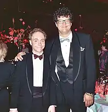 Penn and Teller were introduced to each other by Wier Chrisemer,[3] and they performed their first show together at the Minnesota Renaissance Festival on August 19, 1975.[4] From the late 1970s through 1981, Penn, Teller, and Chrisemer performed as a trio called "The Asparagus Valley Cultural Society", which played in Philadelphia’s Walnut Street Theater, and in San Francisco, California, at the Phoenix Theater.[5] Chrisemer helped to develop some bits that continued, most notably Teller's "Shadows" trick, which involves a single red rose.[6] The group disbanded in 1981 after Chrisemer quit show business, leaving Penn Jillette and Teller to work as a pair on a show called "Mrs. Lonsberry's Seance of Horror".[5]