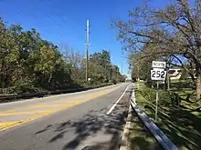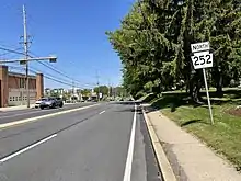 PA 252 begins at an intersection with PA 320 north of the city of Chester in Nether Providence Township, Delaware County, heading north-northwest on two-lane undivided Providence Road. The road passes through wooded suburban residential neighborhoods, running to the west of Springhaven Country Club. The route heads into the community of Wallingford, where it passes to the east of Strath Haven High School and comes to a bridge over SEPTA's Media/Wawa Line west of Wallingford station. PA 252 continues north and enters the borough of Media, where it heads into commercial areas and intersects Baltimore Avenue. A block further north, the route intersects State Street at the point SEPTA's Route 101 trolley line crosses the road at-grade west of the Providence Road station. The road continues through residential areas in the eastern part of Media. PA 252 leaves Media for Upper Providence Township and continues past homes with some businesses. The route widens to a four-lane divided highway as it comes to an interchange with the US 1 freeway bypass of Media. Past this interchange, PA 252 becomes a four-lane undivided road with two northbound and southbound lanes, passing to the west of Rose Tree Park.[2][3]