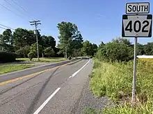 Pennsylvania Route 402 (PA 402) is a 29.24-mile (47.06 km) north–south state route in the Pennsylvania counties of Monroe and Pike. The southern terminus of the route is at U.S. Route 209 Business (US 209 Bus.) in the Smithfield Township village of Marshalls Creek. The northern terminus is at US 6 in Palmyra Township.