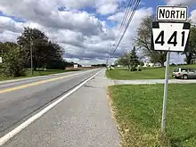When Pennsylvania first legislated routes in 1911, the road between Columbia and Marietta was designated as part of Legislative Route 280, which continued north to Maytown, west to Bainbridge, and northeast to Lebanon.[5] The road between Columbia and Marietta was paved by 1926.[6] PA 441 was designated in 1928 to run from Washington Boro north to US 22 (Paxton Street) in Harrisburg. At this time, the route was paved between Washington Boro and Marietta, Bainbridge and Falmouth, and Royalton and Middletown, while the road to the northwest of Middletown was under construction.[7][8] In the 1930s, the entire length of PA 441 was paved.[9] Also, the northern terminus at Paxton Street was with US 322/US 422, which replaced that portion of US 22 which was realigned to the north.[10]