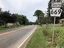 PA 669 begins at the state line as a continuation of MD 669 in the community of Elk Lick Township. The route progresses northward as Springs Road, passing through the rural regions of southern central Pennsylvania.[2] This section of Somerset County is home to the Somerset Amish Settlement.[3] Around the intersection with Ash Hill Road, the highway passes a light demographic of homes, but as PA 669 turns to the northwest at Upper Springs Road, begins to grow. The highway enters the community of Springs, a portion of Elk Lick Township. Through Springs, PA 669 becomes surrounded by light forestry and residences, turning to the north once again at an intersection with Shoemaker Hill Road. For a short stretch after Shoemaker Hill Road, PA 669 becomes a rural highway, crossing through fields. However, this changes as the highway enters the community of Niverton. In Niverton, PA 669 passes some residences and a large lumber yard, but after curving eastward at Fisher Road and Savage Road, Springs Road and PA 669 return to their rural nature.[2]