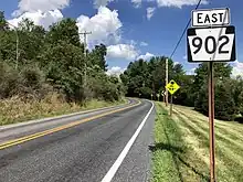 When Pennsylvania first legislated routes in 1911, present-day PA 902 was not given a number.[4] PA 902 was designated in 1928 to run from US 209 near Summit Hill southeast to New Mahoning along a paved road. At this time, the road between New Mahoning and Lehighton existed as a paved unnumbered road.[5] PA 902 was extended east from New Mahoning to US 209/US 309 in Lehighton in the 1930s, following Mahoning Drive and Mahoning Street.[6][7] In the 1980s, PA 902 was rerouted to follow Ninth Street to its current eastern terminus at PA 443.[8]
