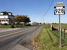 Pennsylvania Route 928 (PA 928) is a 11.42-mile-long (18.38 km) state highway located in Fulton County, Pennsylvania. The southern terminus is the Maryland state line in Thompson Township. The northern terminus is at U.S. Route 522 (US 522) in Ayr Township.