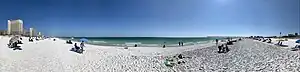 Pensacola Beach is an unincorporated community located on Santa Rosa Island, a barrier island, in Escambia County, Florida, United States. It is situated south of Pensacola (and Gulf Breeze connected via bridges spanning to the Fairpoint Peninsula and then to the island) in the Gulf of Mexico. As of the 2000 census, the community had a total population of 2,738. It has been described as "famous" for its ultra-white sand beaches.[1][2]
