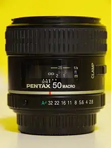 The smc Pentax-D FA 50mm f/2.8 Macro lens is a normal macro lens for the Pentax K-mount. While optimized for digital use, it offers full frame 135 film coverage. The lens is capable of reaching 1:1 magnification.