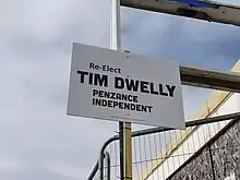 Election placard for Tim Dwelly in Penzance before the 2021 election