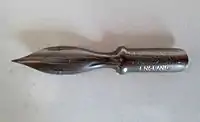 Perry & Co. produced a large variety of models for different purposes, most of them designed to produce fine lines (such as Nº 25 or 341, which is still easy to find in stores of Argentina). Other models were also popular by their names, like the "Queen Mary" [7] or the "Quill Pen" (Nº 230-231-232) [8] Perry & Co. also produced different giant-sized versions of its N°2301 Indent Pen model. Those were 5" long (see thumbnail photo).
