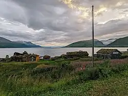 Located closer to the forest, the whole Mortengården farmstead includes seven log buildings with turf roofs. These seven buildings were relocated to this site from different farms of Troms after the Second World War to represent a typical coastal farm from the 19th century. The main Mortengården building was originally a two-room living room built in the second half of the 18th century from Straumshamna on Kvaløya. It has no external cladding except for the sea-facing facade painted yellow.[6]