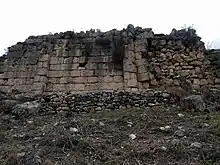 The Persqopi settlement can be dated to the second half of the 4th century BC. No ancient author mentions it by its Perqopi current name. It is thought to have been lived by the Illyrian tribe of the Parthini. The ancient city is on one side of the Vila Mountain, which is the last peak of the Krrabë mountain range. At 590 m over the level of sea, its strategic position facilitated the control of a large territory of the roads around the mountain. Its fortifying wall is one of the best preserved in the Albanian territory, and is 60 m long and 7 m high. There are 10 lines of stones. The entrance is 2.6 m large and is the only one that can still be seen today.[1][2]