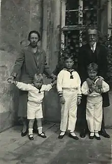 However, his grandfather lost his title when the monarchies were abolished in Germany in the November Revolution of 1918. Unofficially, however, the use of the ducal title continued even after 1918. In 1931, the grandfather also became head of the House of Oldenburg and pretender to the throne in Schleswig-Holstein, when the Augustenborg branch of the princely house became extinct that year.[1][2]