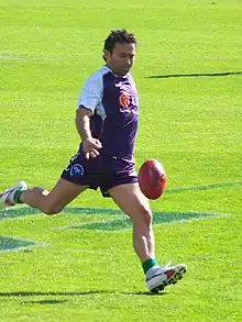 He was educated at Aquinas College, Perth[5] where he was a boarder. At Aquinas, he continued playing junior football from age 15 where he excelled, earning selection in the WA junior representative team.[4] In 1994, he joined the South Fremantle Football Club and had an immediate impact being named best and fairest.[4] Despite being considered short by AFL standards at the time he was shortly after selected in the inaugural Fremantle Dockers AFL club list drawn from the local clubs.[4]
