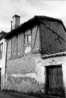 A Spanish house with brick and half-timbering, photo by Peter J. Weber, spring of 1932.