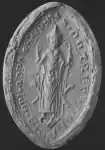 Following the death of Archbishop-elect Benedict, some canons of the cathedral chapter of Esztergom elected Peter Kőszegi as his successor on 13 March 1277. Beyond his brothers and their allies, neither Ladislaus IV nor the other baronial groups acknowledged the process, while Nicholas Kán (King Ladislaus' confidant) also contested the election, referring to his status of archbishop-elect from the previous years.[12] In order to solve the situation, Pope John XXI summoned both prelates to Rome, but they refused to attend. Soon, Pope John died on 20 May 1277, and Pope Nicholas III succeeded him after a six-month vacancy.[12] The new pope summoned both Nicholas Kán and Peter Kőszegi to the Roman Curia on 27 January 1278. Peter Kőszegi refused to travel personally, but sent his protege Paul Balog in order to receive papal support for his case. On 1 June 1278, Pope Nicholas declared the see of Esztergom vacant and ordered a new election. Thereafter, Pope Nicholas III appointed Lodomer as the new Archbishop of Esztergom on 13 June 1279, ending a seven-year period of vacancy.[13] After Ladislaus reconciled with the Kőszegis in March 1279 upon the mediation of papal legate Philip of Fermo, Peter joined the entourage of the papal legate, along with the other prelates of the realm. [14] To increase his wealth and dominance, Peter also unlawfully usurped the tithe from the monastery of nuns located in the valley of Veszprém, despite his former promise. As a result, Agnes petitioned to the court of papal legate Philip, who ruled in favor of the monastery and rebuked Peter Kőszegi.[15]