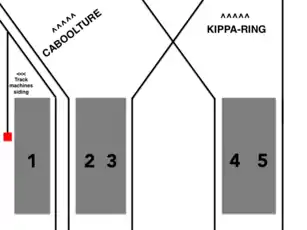 The station has five platforms. As part of the Redcliffe Peninsula line, the station was expanded with a new island platform built east of the existing platforms.[3][4] It opened along with the rest of the line on 4 October 2016.[5] As part of the project, a third track was added south of the station to Lawnton.[6] North of the station, the Redcliffe Peninsula line branches off.