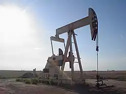 The first commercial oil well in Canada became operational in 1858 at Oil Springs, Ontario (then Canada West).[37] Businessman James Miller Williams dug several wells between 1855 and 1858 before discovering a rich reserve of oil four metres below ground.[38] Williams extracted 1.5 million litres of crude oil by 1860, refining much of it into kerosene lamp oil. Williams's well became commercially viable a year before Drake's Pennsylvania operation and could be argued to be the first commercial oil well in North America.[39] The discovery at Oil Springs touched off an oil boom which brought hundreds of speculators and workers to the area. Advances in drilling continued into 1862 when local driller Shaw reached a depth of 62 metres using the spring-pole drilling method.[40] On January 16, 1862, after an explosion of natural gas, Canada's first oil gusher came into production, shooting into the air at a recorded rate of 480 cubic metres (3,000 bbl) per day.[41] By the end of the 19th century the Russian Empire, particularly the Branobel company in Azerbaijan, had taken the lead in production.[42]
