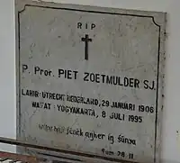 Petrus Josephus Zoetmulder S.J. (January 29, 1906 – July 8, 1995) was a Dutch expert in the Old Javanese language. He came from Utrecht and was associated with the Society of Jesus by 1925. He worked at Leiden University in the 1930s. His first work appeared in 1930 and he continued to write into the 1990s. He lived in Yogyakarta and was interred in the Jesuit necropolis at Muntilan, Java.