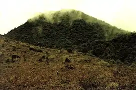 Thin clouds draping one of four summit peaks of Peuet Sague volcano in NW Sumatra
