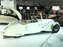 Other models appearing on the “normal” wheelbase at the 1936 show included a Grand-luxe berline with a sliding steel sun roof, a 4/5 seater 2-door soft-top cabriolet priced in October 1936 at 30,900 francs, a 5/6-seater "coach" (elegant two-door saloon) priced at 29,900 francs, a 2/3-seater roadster at 27,900 francs and a "coupé transformable Éclipse", which was a steel-roofed convertible, priced at 34,900 francs.[4]
