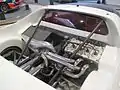 The Quasar retained the mid-mounted twin-turbo inline-four engine from the 205 T16, tuned to produced 600 horsepower and 360 pound-feet of torque.[7] It featured turbofan-styled wheels which would later be applied to the SV24 sport trim level of the 605, and sported Michelin MXX 255/50 R16 tires, then one of the most advanced compounds available.[8] Like on the T16, the suspension was very similar in design to that of Formula One cars,[9] and various components were made of kevlar or carbon fibre for weight reduction. The 60/40 Ferguson AWD system, like in the 205 T16, was permanently active.[10]