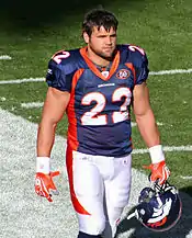 Following an injury to Ryan Torain in the Broncos 34–30 comeback road victory over the Cleveland Browns, Hillis was named Denver's starting running back. His first start at the position netted him 44 yards and two touchdowns on only 10 carries as part of a 24–20 road victory over the Atlanta Falcons.[7] Two weeks later, he recorded his first 100-yard rushing game with 129 yards and a touchdown on 22 attempts in a 34–17 road victory over the New York Jets.[8] The performance earned Hillis multiple honors including being named Diet Pepsi NFL Rookie of the Week as well as FedEx Ground Player of the Week alongside Broncos quarterback Jay Cutler, who was named NFL Air Player of the Week.[9] The string of victories and accolades built up anticipation among Broncos faithful for Hillis to continue as running back for the rest of the season. However, the season already plagued with running back injuries continued, with Hillis suffering a season-ending injury in a 24–17 home win over the Kansas City Chiefs. Coming down from an acrobatic catch of a Cutler pass with his right foot planted, Hillis was hit from both sides by Chiefs' free safety Jarrad Page and cornerback Brandon Carr. The hit doubled Hillis over, causing a 2–3 inch tear in his right hamstring behind the knee, which forced him to miss the rest of the season.[10] Despite his limited playing time, Hillis ended the 2008 season as the Broncos' leading rusher with 343 yards and five touchdowns and was expected to return as a significant offensive presence for the 2009 season.[11]