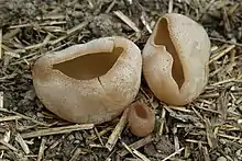 Peziza vesiculosa is a species of apothecial fungus belonging to the family Pezizaceae. This is a common species of Europe, with scattered records in other parts of the world. The pale, cup-shaped ascocarps can grow quite large (up to 10 centimetres or 4 inches in diameter) and often form densely packed groups. It is found on nutrient-rich soils, rotting straw and manure and can often be seen on compost heaps. The species is considered poisonous.[1] It is difficult to identify without microscopy.[2]