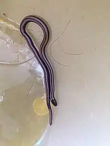 - 1 2 Negrin, Alba; Morais, Víctor; Carreira, Santiago; Tortorella, María Noel (September 2019). "Mordedura de Phalotris lemniscatus (Duméril, Bibron & Duméril, 1854) (Squamata, Dipsadidae) en Uruguay". Acta toxicológica argentina. 27 (2): 65–71. ISSN 1851-3743.