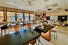 Philadelphia-Montgomery Christian Academy, commonly known as Phil-Mont Christian Academy, is a selective private Christian school serving grades PK-12.[2] Phil-Mont was founded in 1943 by Cornelius Van Til and others.[3] Phil-Mont's curriculum is rooted in a christian worldview, the principles of the liberal arts, and uses some features of a classical education model. Phil-Mont currently resides in the former Springfield Township High School & Hillcrest Junior High School building, built in 1923/24. Phil-Mont purchased the unused building and restored it to working order for grades 6-12 in 1979. The property was originally part of Chestnut Hill Park/White City Amusement Park, part of which is now also Springfield Township's James A. Cisco Park and Hillcrest Pond.