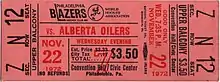Ticket from the November 22, 1972 game between the Blazers and the Alberta Oilers.