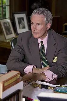 At the age of 15, Bobbitt graduated from Stephen F. Austin High School, where he was elected president of the student council.[5] He graduated with a Bachelor of Arts in philosophy from Princeton University in 1971 where his thesis advisor was philosopher Richard Rorty. His thesis, "On Wittgenstein and a Philosophical Topology," was one of the earliest attempts to argue for an underlying continuity between the Tractatus Logico-Philosophicus and the Philosophical Investigations.[6] While at Princeton, Bobbitt was president of the Ivy Club and Chairman of the Nassau Literary Magazine.[7] He left Princeton after three semesters to enter AmeriCorps VISTA.[7] He worked in a poverty program in an all-black area of Los Angeles for two years before returning to college.[8] In 1975 he received his J.D. from Yale Law School, where he was Article Editor of the Yale Law Journal [9] and taught at Yale College. It was at Yale that he met Charles L. Black, Jr. (1915–2001), who became a friend and mentor to Bobbitt.[10] After graduating from Yale Law School, Bobbitt clerked for Judge Henry Jacob Friendly (1903–1986) of the United States Court of Appeals for the Second Circuit.[11]; He received his Ph.D. in modern history from the University of Oxford in 1983 as a member of Nuffield College.[12][13]