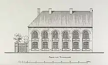 The southeastern part of the property, with the Philip de Lange House, was in October 1864 sold to Prinsessegades Betalinghsskole. The building that now hides the Philip de Lange House from the street was constructed in 1865.[1]