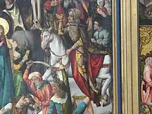 Count Philipp I the Younger of Hanau, shown as Roman captain in the crucifixion scene on the altar at Wörth am Main