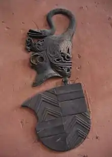 To distinguish between the two parts of the county, the part ruled by Philipp the Elder was called Hanau-Lichtenberg after he inherited Lichtenberg in 1480.[2] The other part was officially named Hanau-Münzenberg in 1496. In the literature, the names Hanau-Lichtenberg and Hanau-Münzenberg are used to distinguish the parts before these dates, even though, strictly speaking, that is an anachronism. One should say Hanau-Babenhausen when referring to Philipp's the Elder's possessions before 1480.