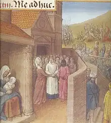 Born in Catania, Philippa was a local fisherman's daughter.[1][2] Boccaccio, who met her when she was already an elderly woman, noticed that she was "attractive in manner and appearance".[2] She worked as a washerwoman when Robert, Duke of Calabria—son of Charles II, King of Naples—invaded Catania in 1328.[2] His wife, Violante of Aragon, accompanied him to the military campaign.[2] After discovering her pregnancy, Violante had to hire local staff and she chose Philippa as wet nurse for her son, Charles.[2] Philippa was a diligent servant and Violante brought her back to Naples after her husband had been forced to withdraw his troops from Sicily.[2]