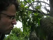 ![]() Philippe Cuénoud with a three-toed sloth in Panama, 2006. | |