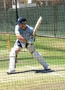 Hughes was signed by Middlesex on a short-term contract, as cover for Murali Kartik, for the beginning of the 2009 English cricket season.[21][22] He was available for the first six weeks of the season and played in three County Championship matches, all eight of Middlesex's Friends Provident Trophy group matches and the first few matches in the Panthers' defence of the Twenty20 Cup.[23] In most other years, a contract for the opening six weeks of the season would involve playing four to six championship matches, some but not all FPT matches, and no Twenty20, but the scheduling for 2009 had to accommodate ICC World Twenty20 and the eventually-cancelled Stanford Super Series. Despite Hughes holding an Italian passport by virtue of his Italian mother, Middlesex resisted signing him up as a Kolpak player and instead signed him as a foreign player.[24] He enjoyed strong success in England, scoring 574 runs in his three first-class matches, including three hundreds, at an average of 143.50.[25] Of his time at Middlesex, Hughes commented: