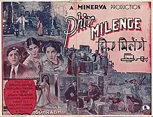 Phir Milenge (We Will Meet Again) is a 1942 Indian Hindi and Urdu-language social drama film produced and directed by Sohrab Modi.[1] Made under the banner of Minerva Movietone, it had music by Mir Saheb while the lyricist was Pandit Sudarshan.[2][3] Modi had discovered Meena when she came to watch his film shooting. He cast her in a character role for her debut in Sikandar (1941). This was her second film for Modi where she played a supporting role. She was later to marry producer, director Roop K. Shorey and go on to become popular as Meena Shorey.[4]