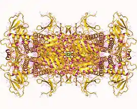 The crystal structure of PurE indicates a unique quaternary structure that confirms the octameric nature of the enzyme.[1]