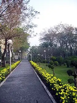 The art of garden decoration and tree training on toothbrush trees (Streblus asper) and Fukien tea trees (Ehretia microphylla). To be various animal shapes is spectacular. The decorated and trained trees look like the garden zoo with plenty of animals, which is dazzling and beautiful in combination with the green and freshness of other plants. Inside the park, there are multi-purpose grounds, pavilions, artificial lake, swimming pool, Lat Krabang Public Library and Lat Krabang Young Centre.[1][2][3]