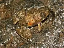 Phrynobatrachus calcaratus, the Boutry river frog or Peters' puddle frog, is a species of frog in the family Phrynobatrachidae.[1][2] It is widely distributed in West Africa (Senegal, Gambia, Guinea-Bissau, Guinea, Liberia, Ivory Coast, Ghana, Togo, Benin, and Nigeria, and possibly adjacent countries) and Middle Africa (Cameroon, Central African Republic, and Bioko (Equatorial Guinea), possibly wider).[1] However, this nominal species is a species complex consisting of several species.[1][2]