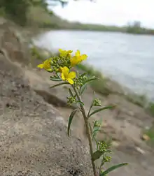 Physaria globosa is a rare flowering plant in the mustard family commonly known as globe bladderpod, Short's bladderpod, and Lesquereux's mustard.[1] It is endemic to the United States, where it is limited to Indiana, Kentucky, and Tennessee.[2] It is a rare species throughout its range and in 2014 the U.S. Fish and Wildlife Service issued a final rule protecting it under the Endangered Species Act.[3][4]
