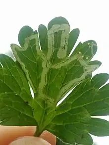 4. 1 2 3 4 "Phytomyza ranunculi (Schrank, 1803) [Diptera: Agromyzidae]". UK Fly Mines. Retrieved 1 February 2020.