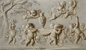 Piat Joseph Sauvage or Pieter Joseph Sauvage (19 January 1744 in Tournai – 11 June 1818 in Tournai) was a painter, sculptor, printmaker and academic lecturer from the Southern Netherlands. He was known for his decorative paintings of interiors, grisailles and miniatures using trompe l'oeil effects as well as his small-scale portrait carvings.[1] He often used precious materials such as marble, porcelain and ivory as the support for his paintings. He was a court painter to the governor of the Southern Netherlands, the Prince de Condé and the French king Louis XVI and a member of the Académie royale de peinture et de sculpture.[2]