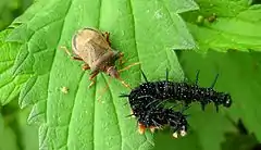 Picromerus bidens, the spiny shieldbug or spiked shieldbug, is a carnivorous species of shield bug in the family Pentatomidae.[2]